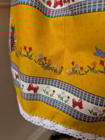 Skirt is fully lined, with fully shirred waistband, and side seams pocket. Trimmed with white cotton cluny lace .
